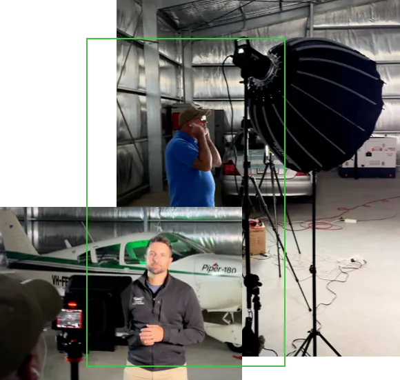 We show up, run the filming day, and make it easy, scripts written, teleprompter on, full camera setup.